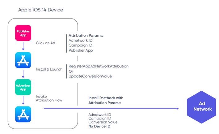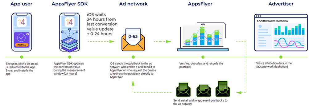 התרשים לקוח מאתר Appsflyer https://support.appsflyer.com/hc/en-us/articles/360011502657-SKAdNetwork-integration-guide-for-ad-networks