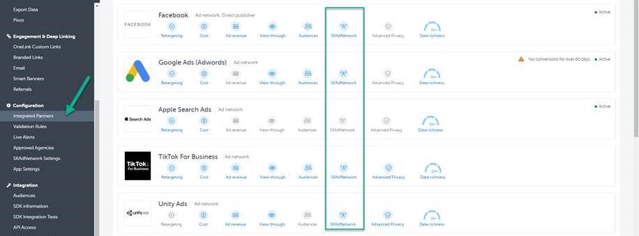 על מנת להגדיר את מדידת ה-SKAdNetwork, נדרשת הגדרה במערכת ה-Appsflyer: