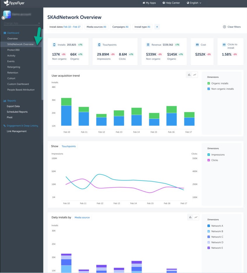 - מרשת המפרסם, הנתונים מועברים לפלטפורמות שמציגות את נתוני ה-SKAdNetwork על גבי דשבורד (כדוגמת Appsflyer, Singular)